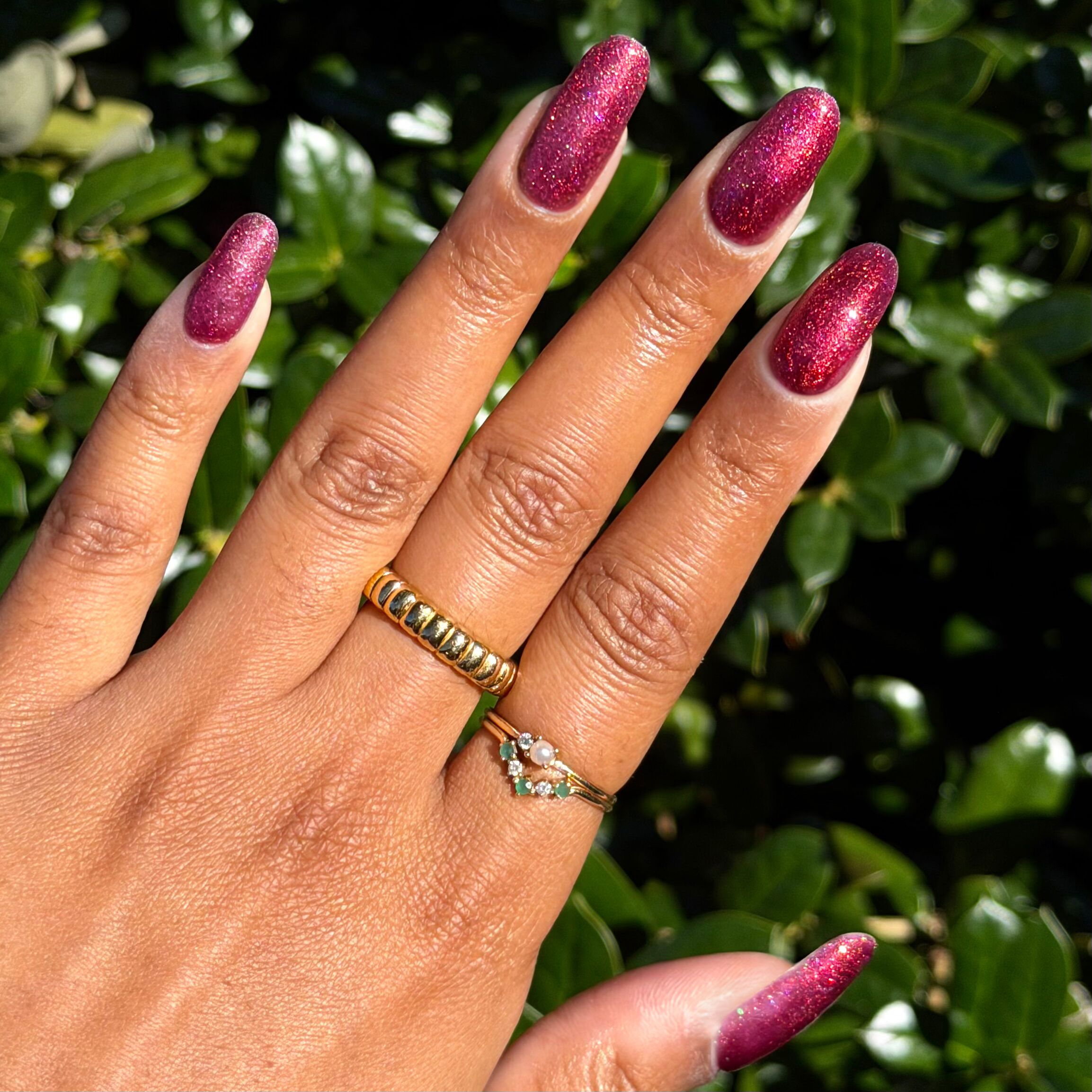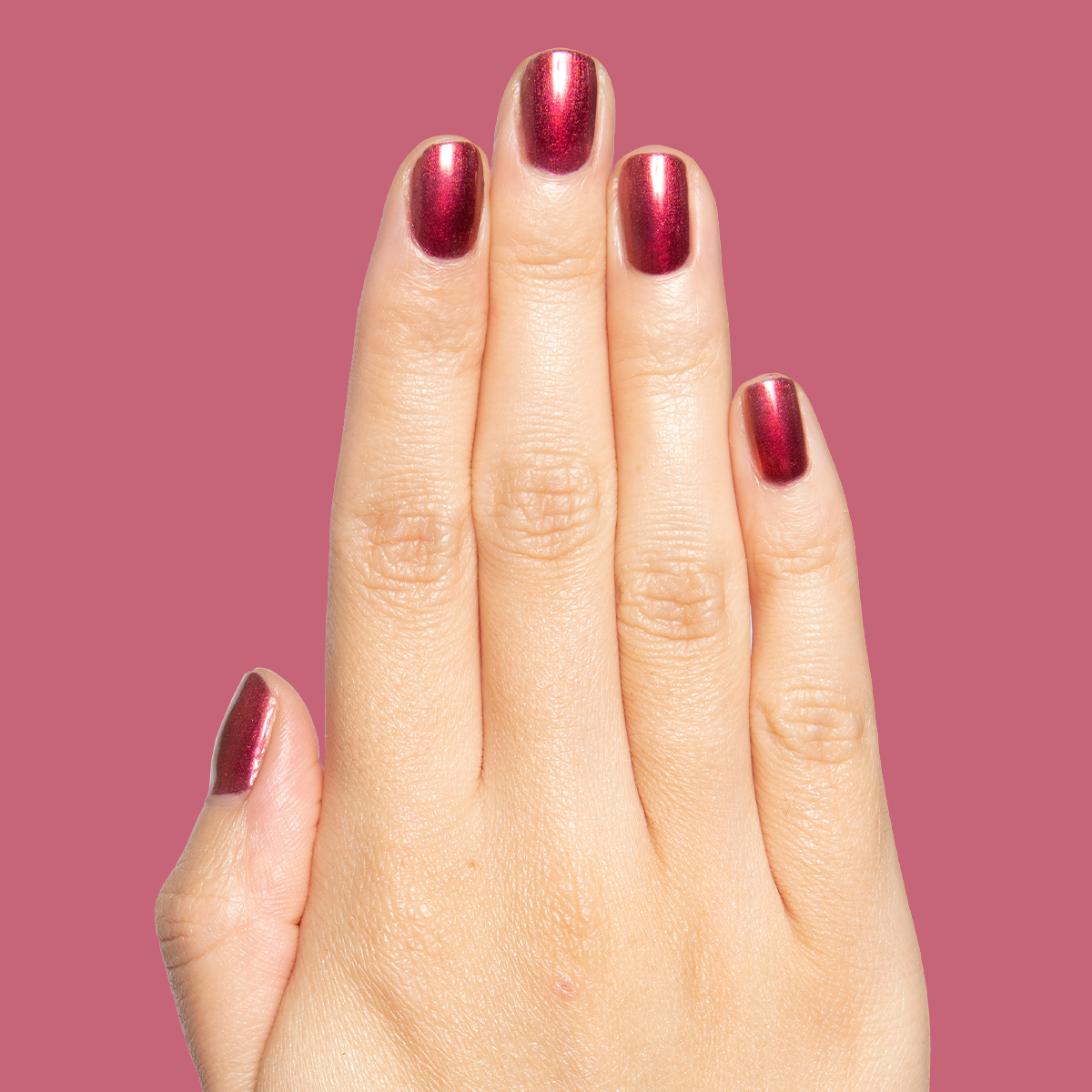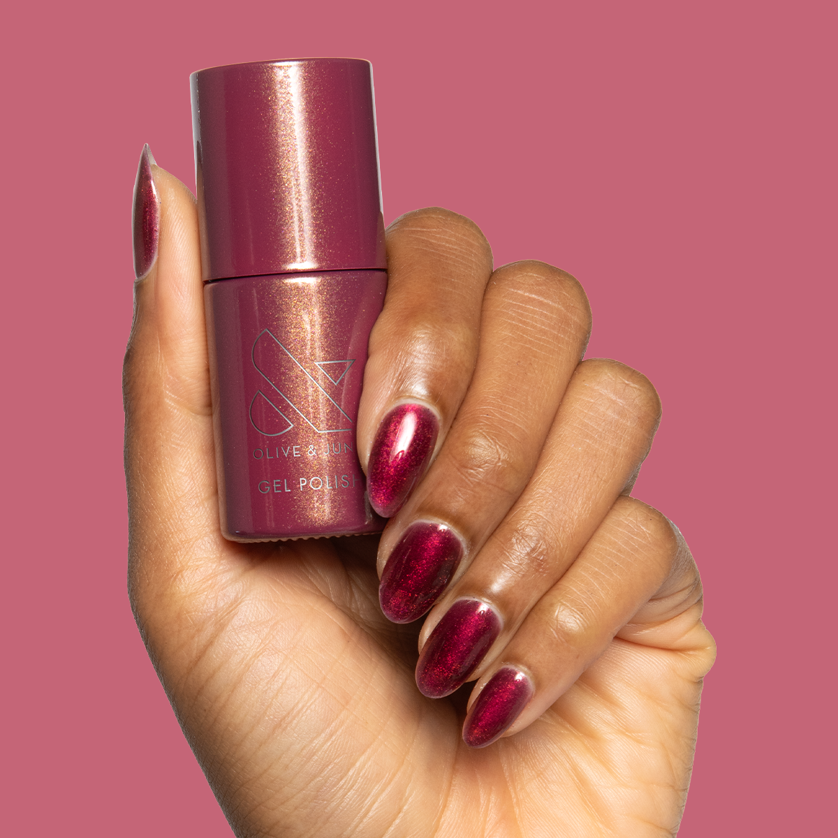 A deep rose-orange duochrome gel polish for nails that are absolutely priceless.