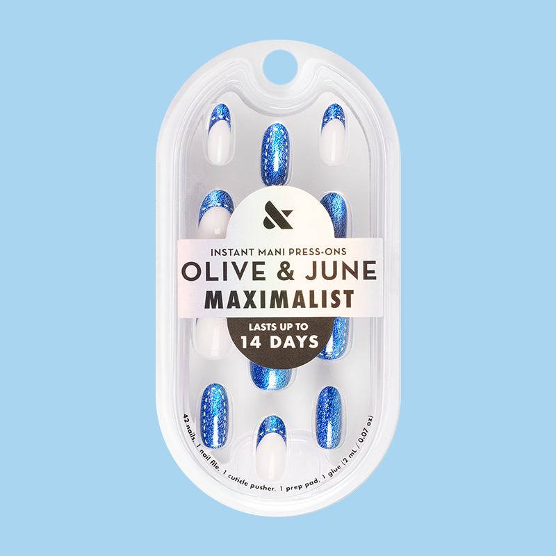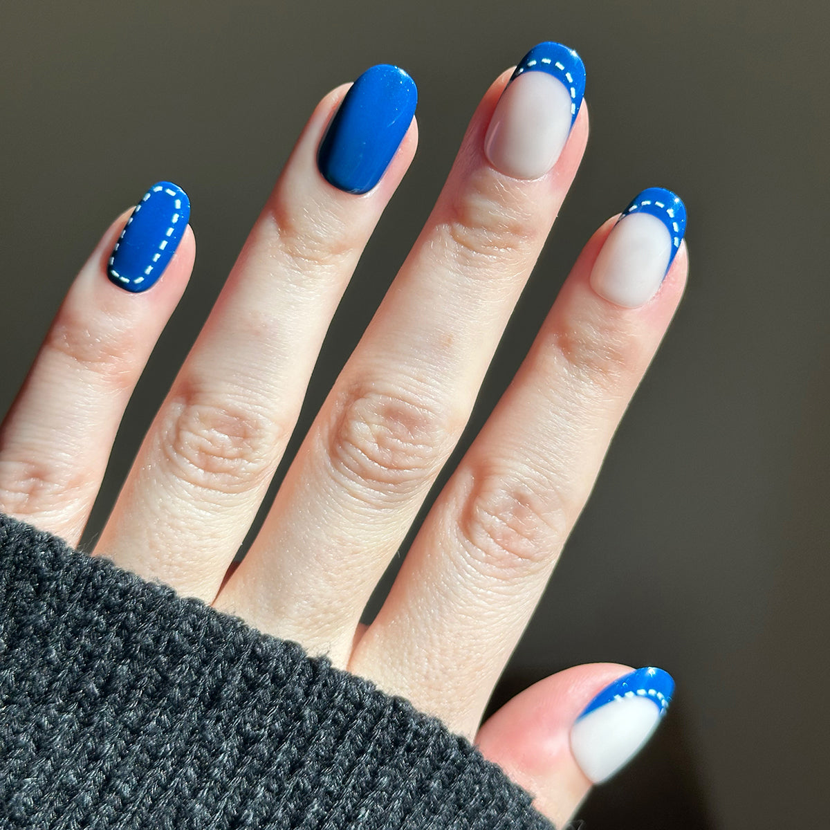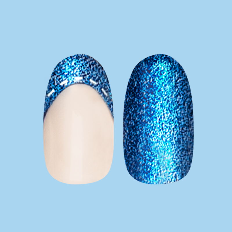 A denim-effect mixed mani pack in a short round shape.