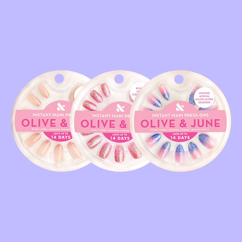 Press on an instant party. This set of 3 flash glitter press-ons are ready for a night on the town.
