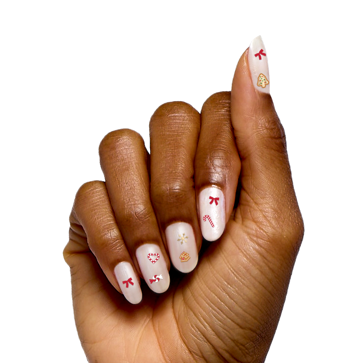 Bake up the most magical holiday mani with this ultra-festive set of mini polishes and mini gingerbread nail art stickers.