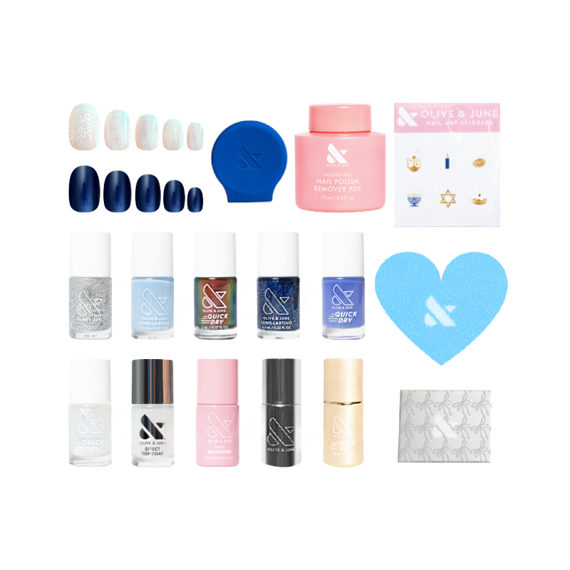 Celebrate the season with 8 nights of festive and fabulous manis. Packed with 8 mini gifts. including special edition shades and exclusive treats you won’t find anywhere else. Behind each door. a new nail delight awaits—because there’s no better way to say Olive You Hanukkah!