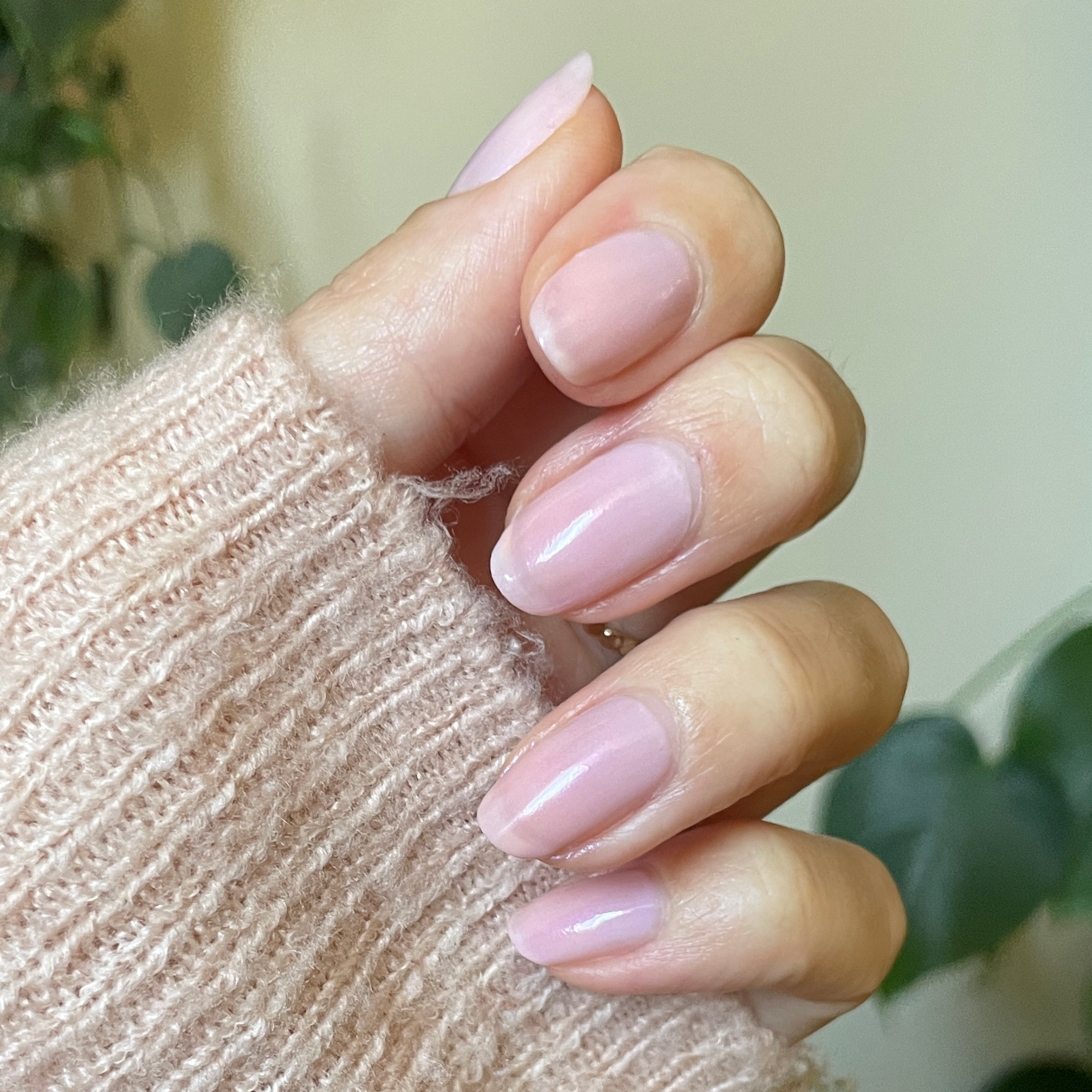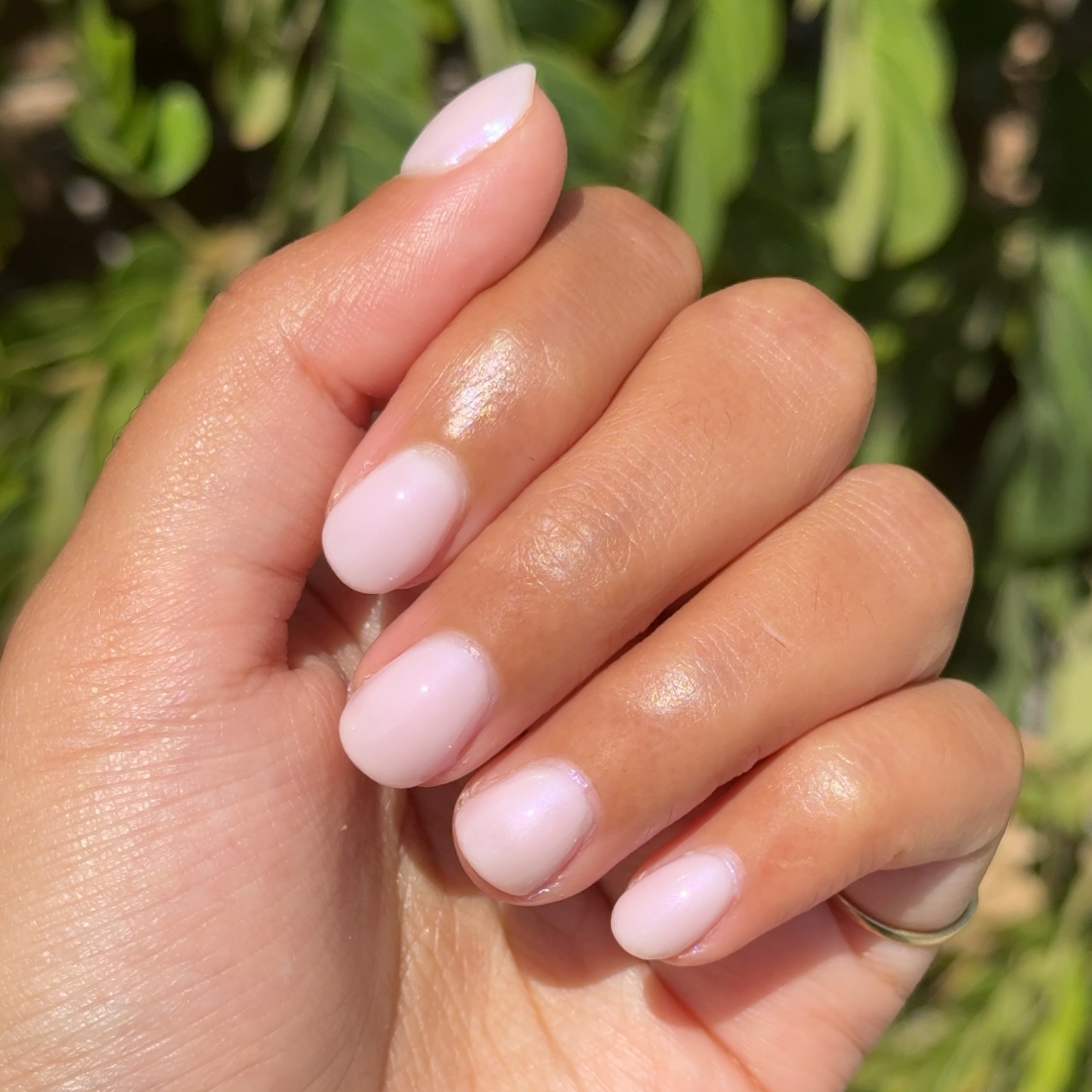 This shimmering pearly sheer mani gives the look of a touch of chrome for a glazed and glossy mani you’ll love.