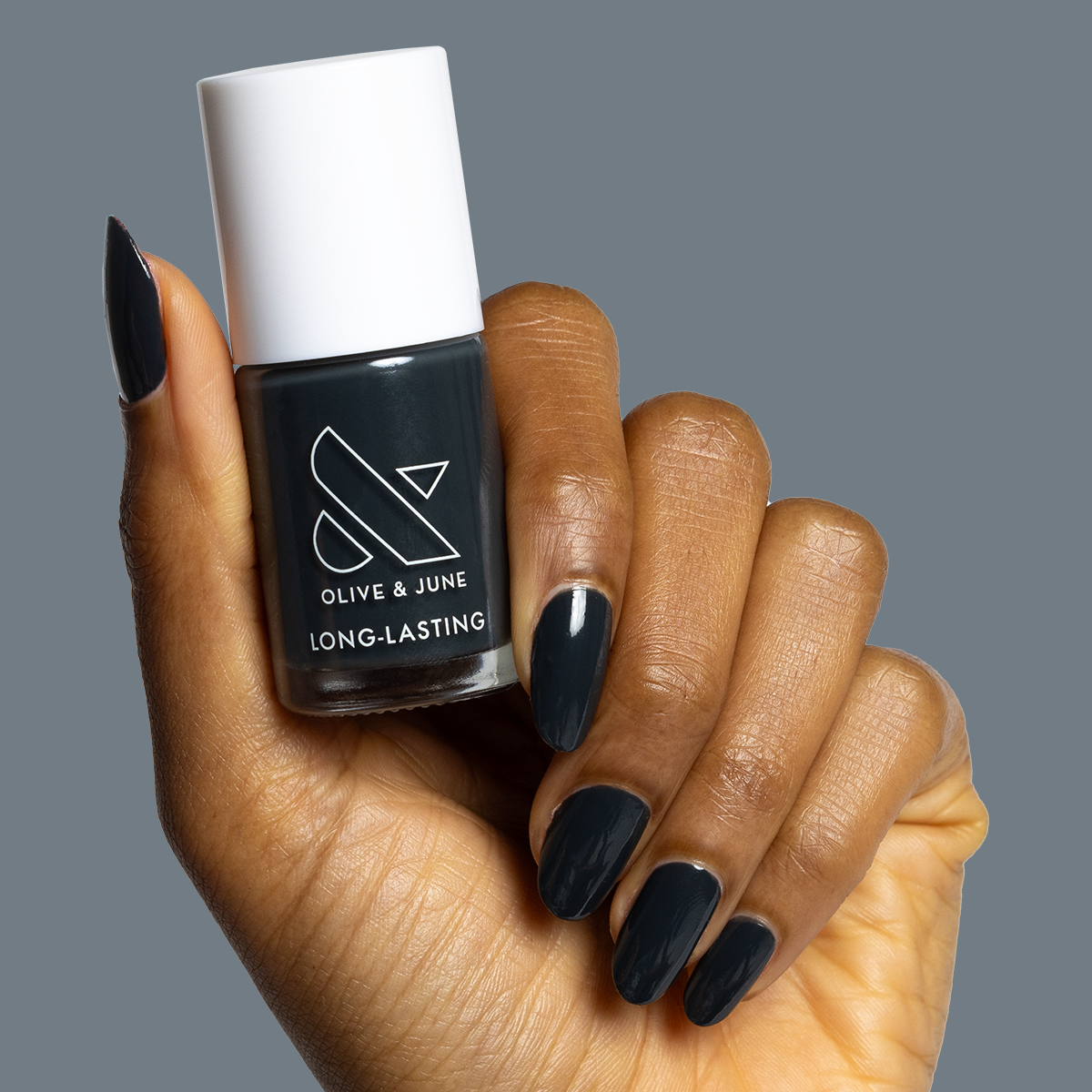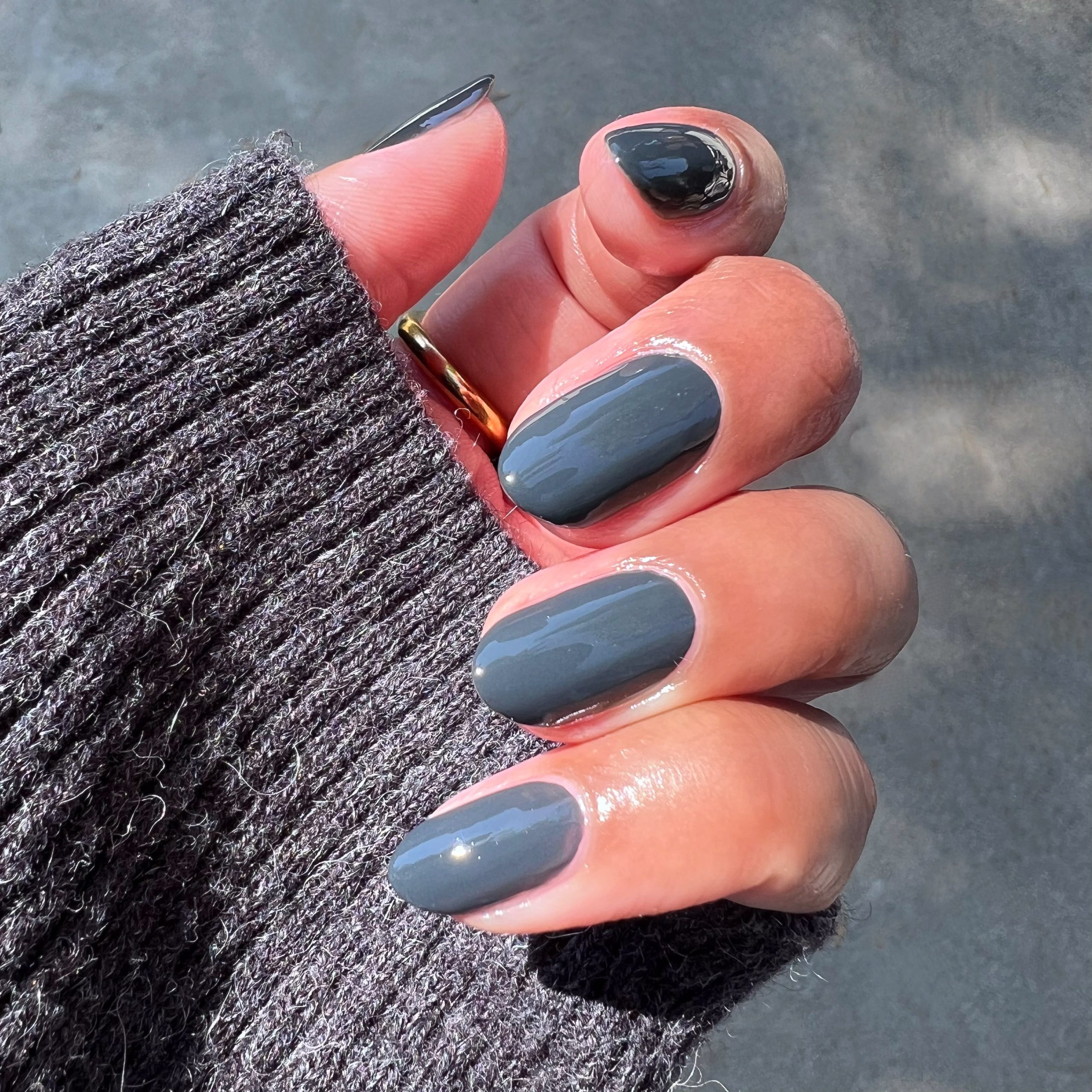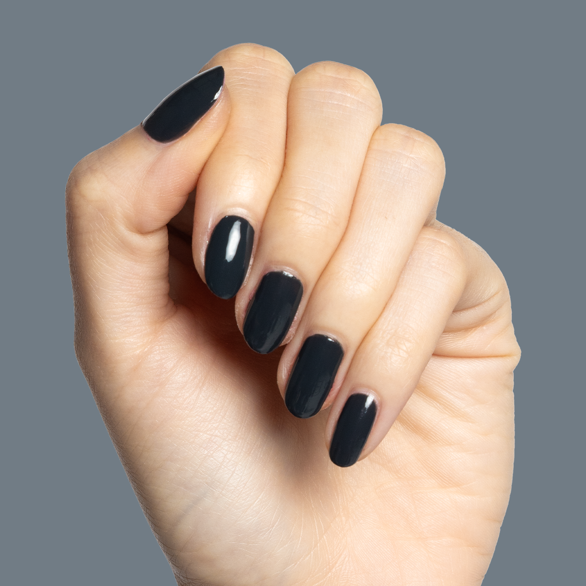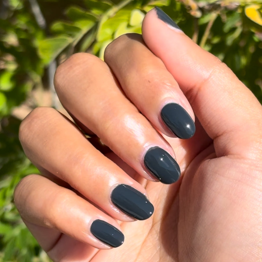 A deep charcoal gray for manis and pedis that are always on time.