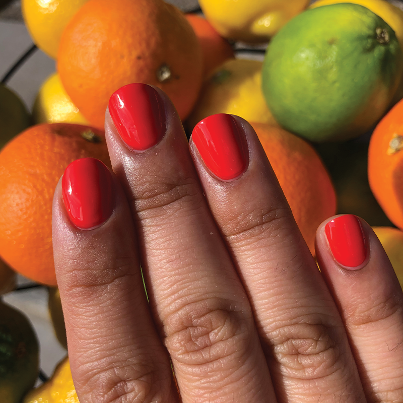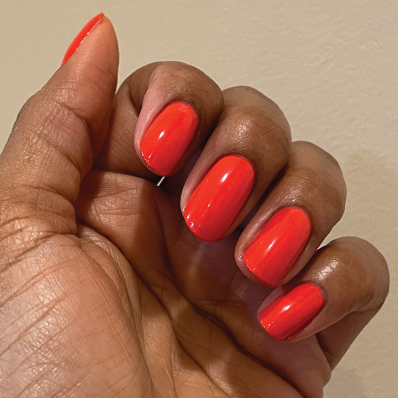 A spicy orange red for a hot. hot mani.