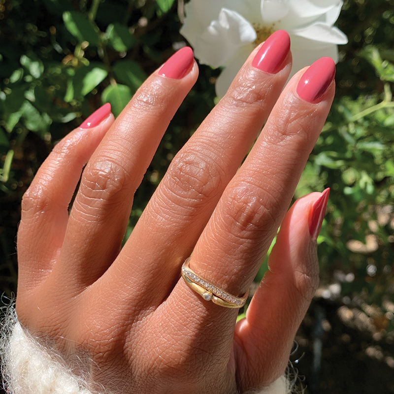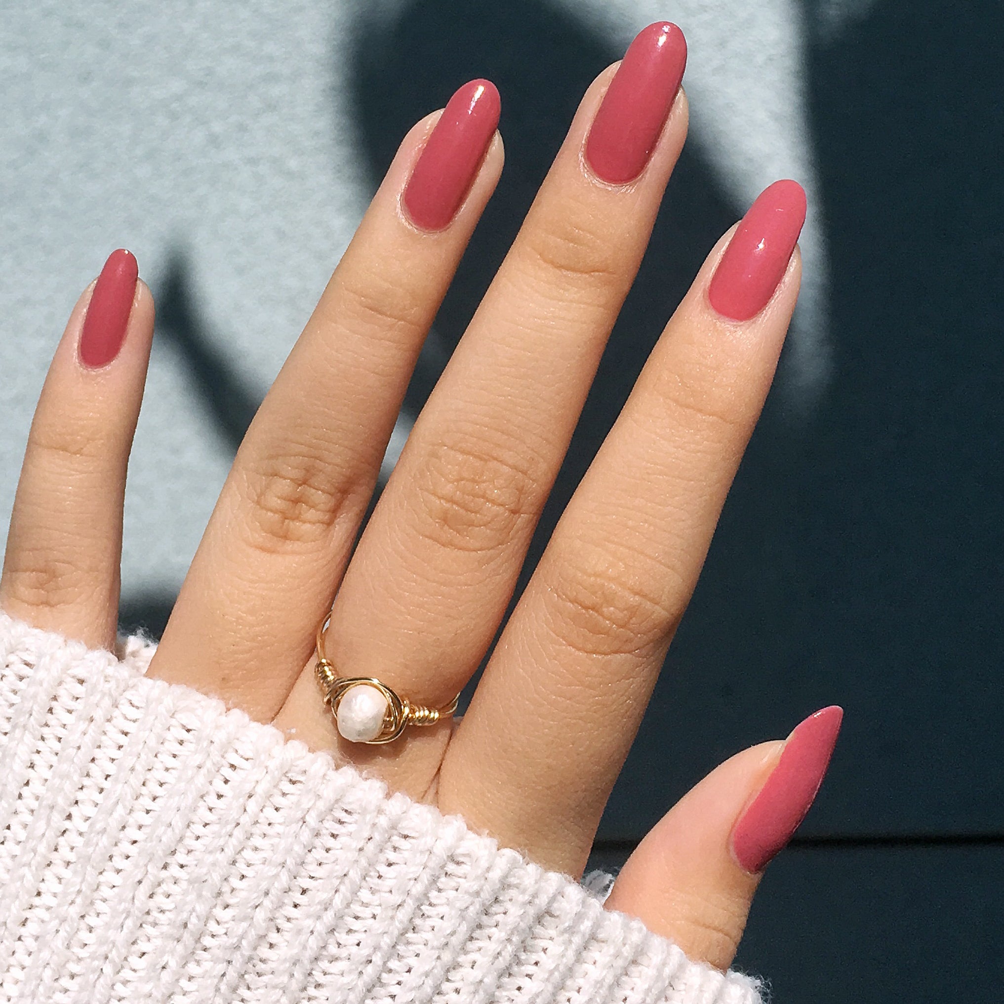 A rosy-hued neutral for a sweater-weather take on pink. This opaque pinky rosewood shade flatters everyone and works for every season.