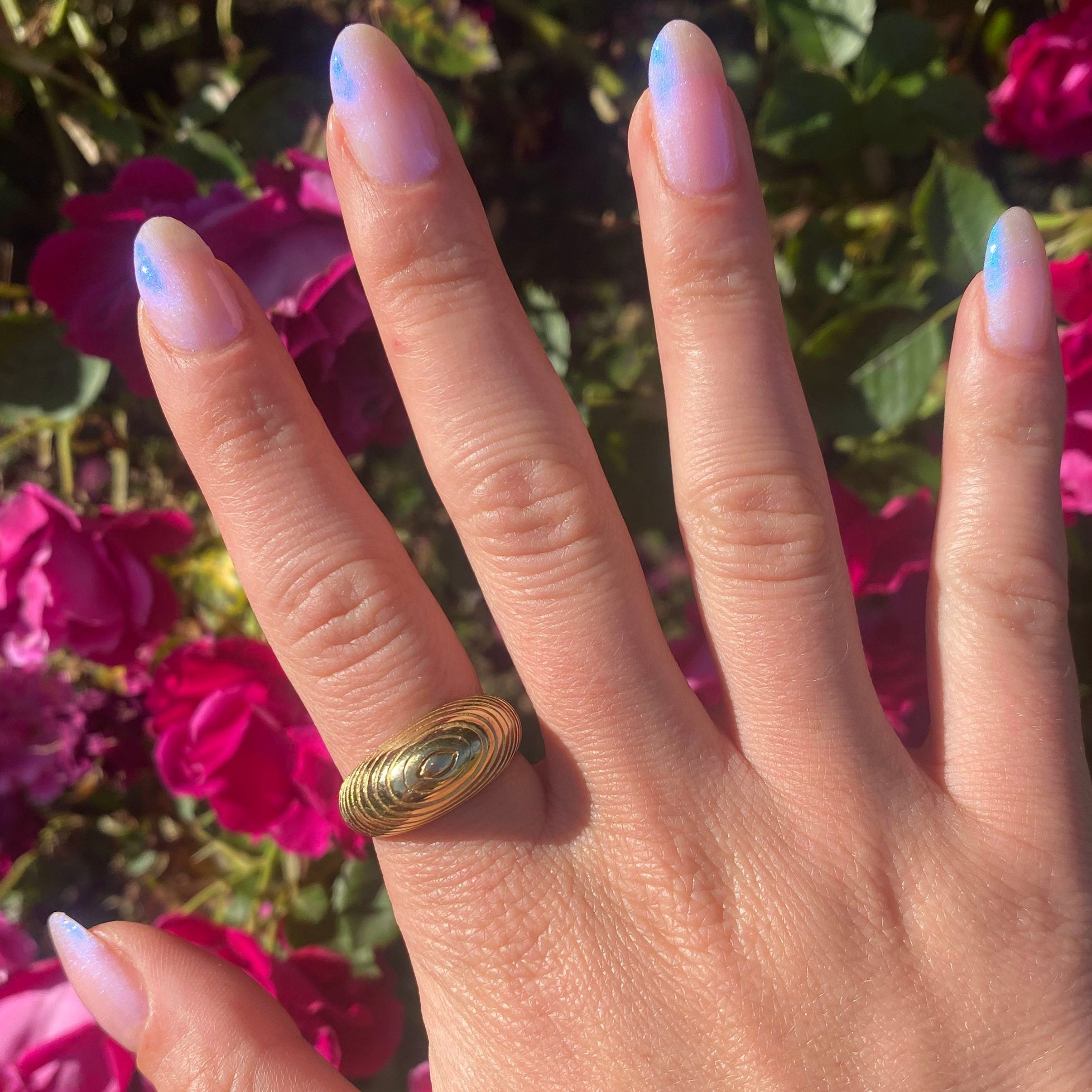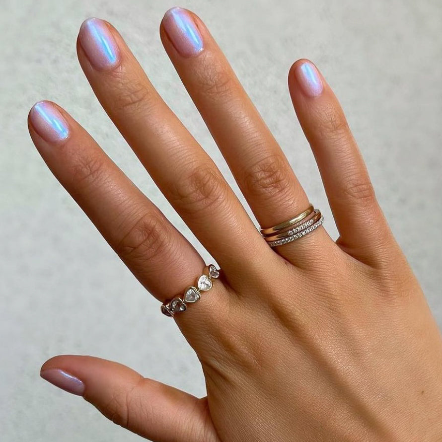 A sheer pink iridescent with a shimmering. luminous glow. Perfect for layering to create the glazed effect over any polish in your collection or worn solo for a soft look. Named by NJK. SGT’s daughter.