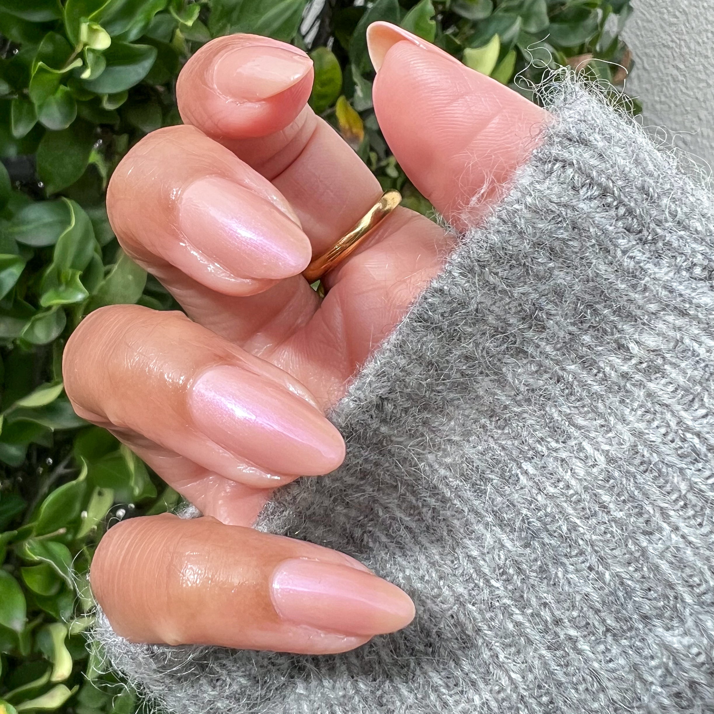 A milky golden iridescent polish that’s sure to be your new new favorite neutral.
