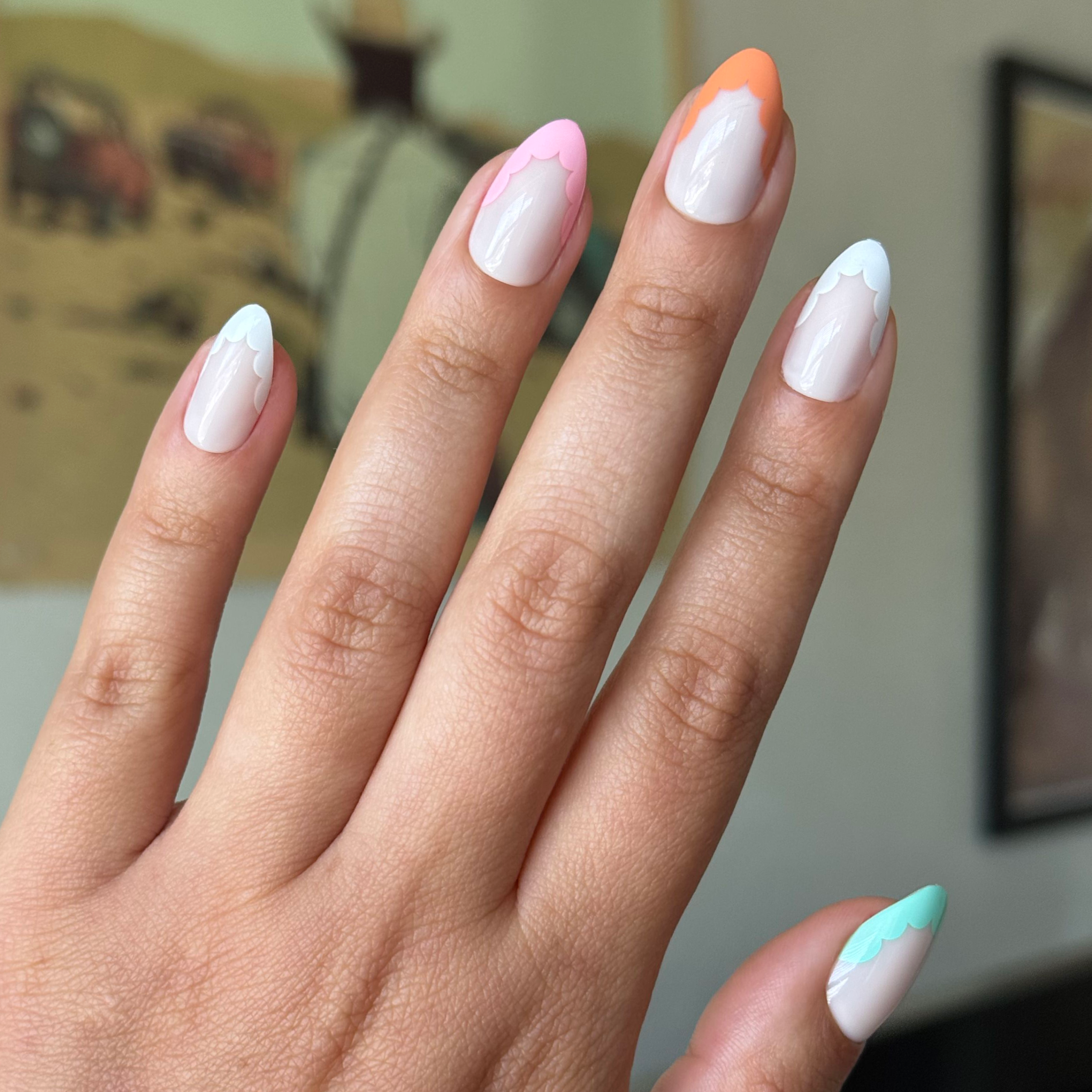 Subtle scallop french tips in all the O&J x Bubble collab colors. Sweet! XO SGT