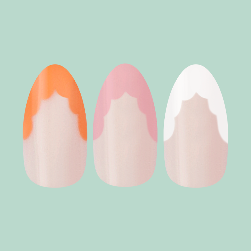 Subtle scallop french tips in all the O&J x Bubble collab colors. Sweet! XO SGT