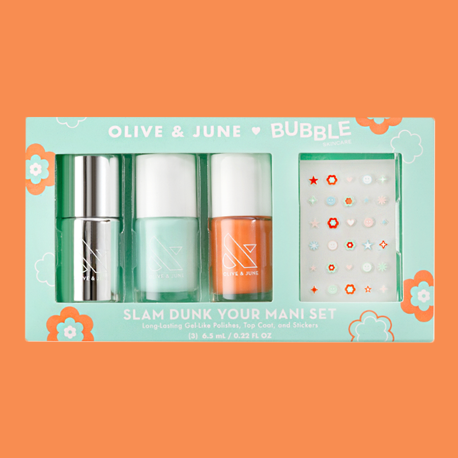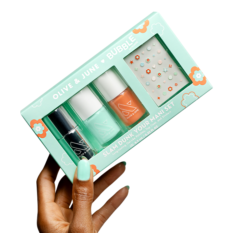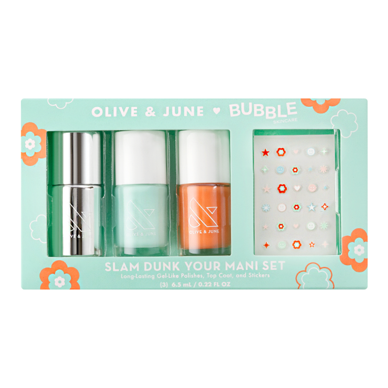 Live your best nail life with this limited edition set of exclusive limited edition long-lasting mini polish shades. nail art stickers. and bestselling top coat. Ready to win your mani game?