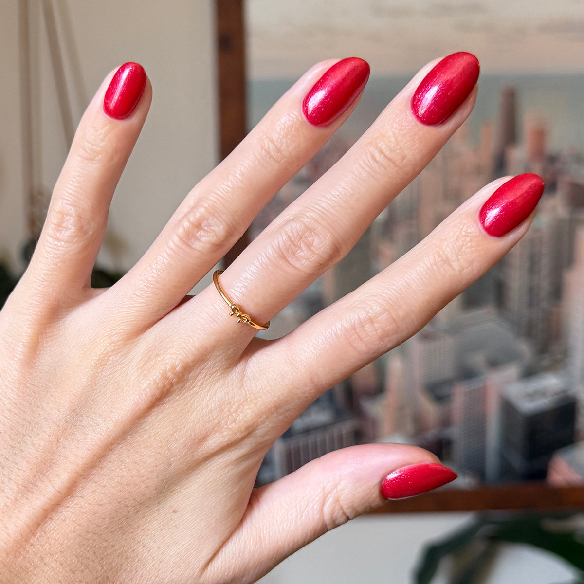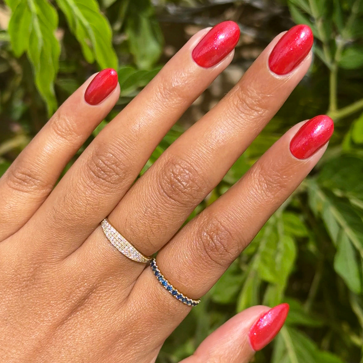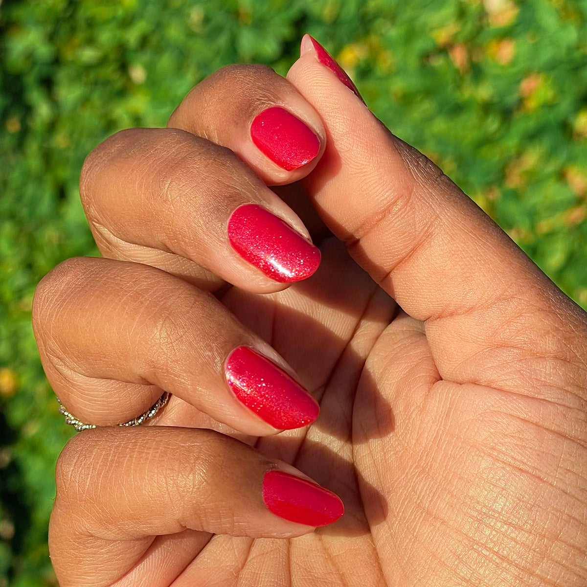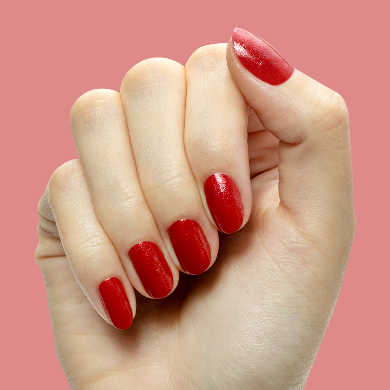 A bubbly pinky-red berry shade with effervescent shimmer. Your mani’s signature flavor.